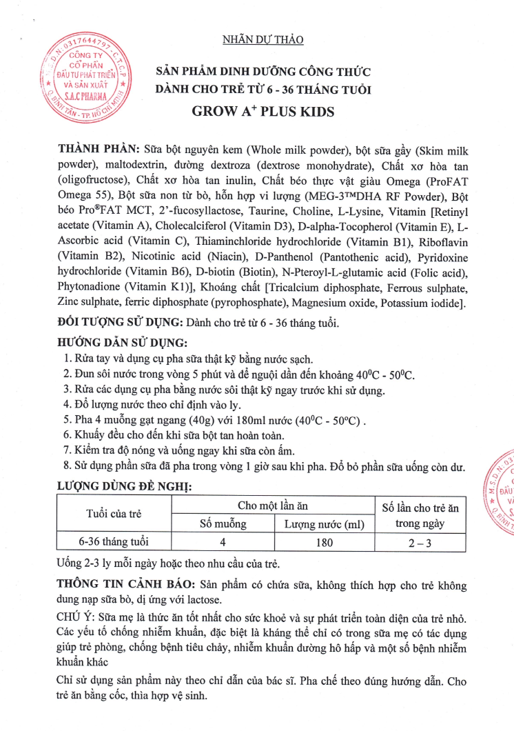 Để đạt hiệu quả tốt nhất, việc pha sữa đúng cách là rất quan trọng. Dưới đây là hướng dẫn pha sữa Grow A+ Plus Kids: