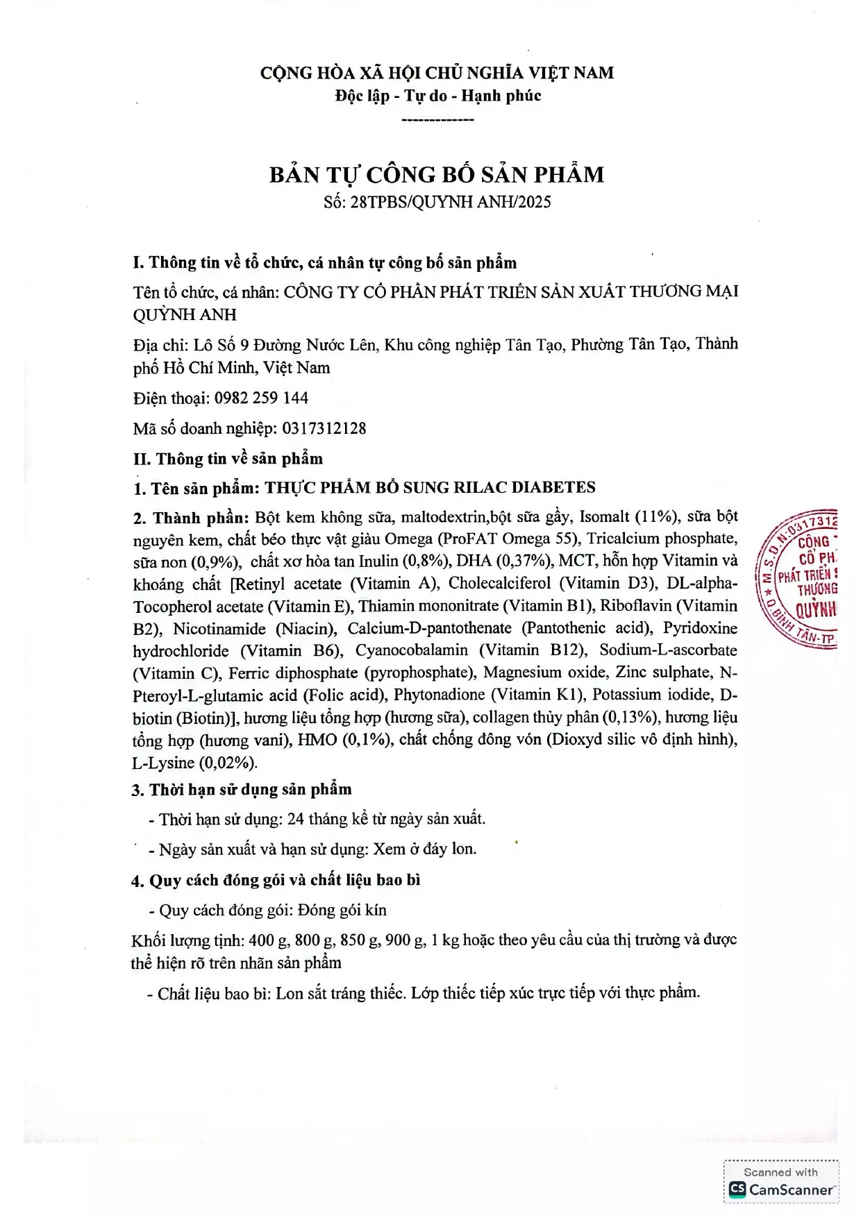 Rilac Diabetes được thiết kế phù hợp cho người cần kiểm soát đường huyết, hỗ trợ cung cấp năng lượng ổn định và hạn chế ảnh hưởng xấu đến đường máu khi sử dụng đúng hướng dẫn.