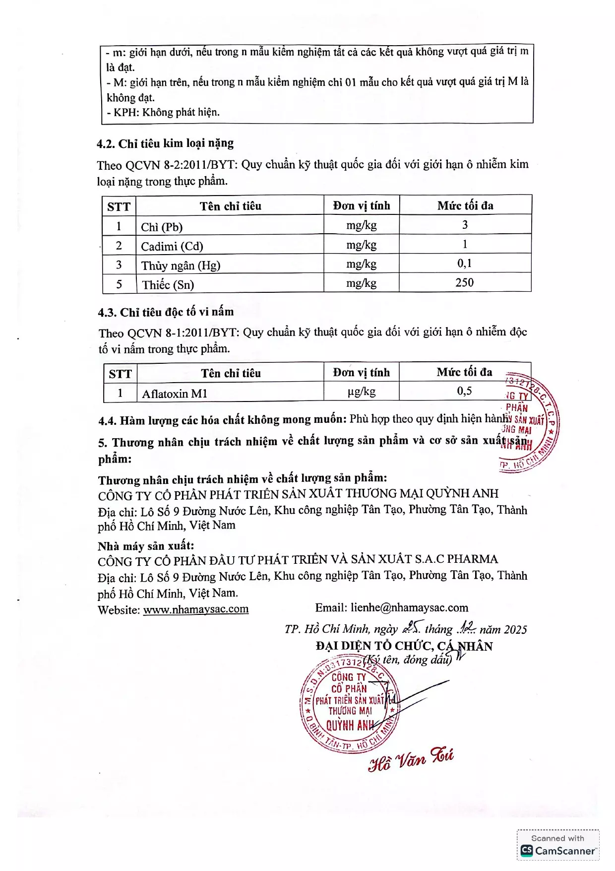 ✅ Không phát hiện kim loại nặng & vi sinh gây hại